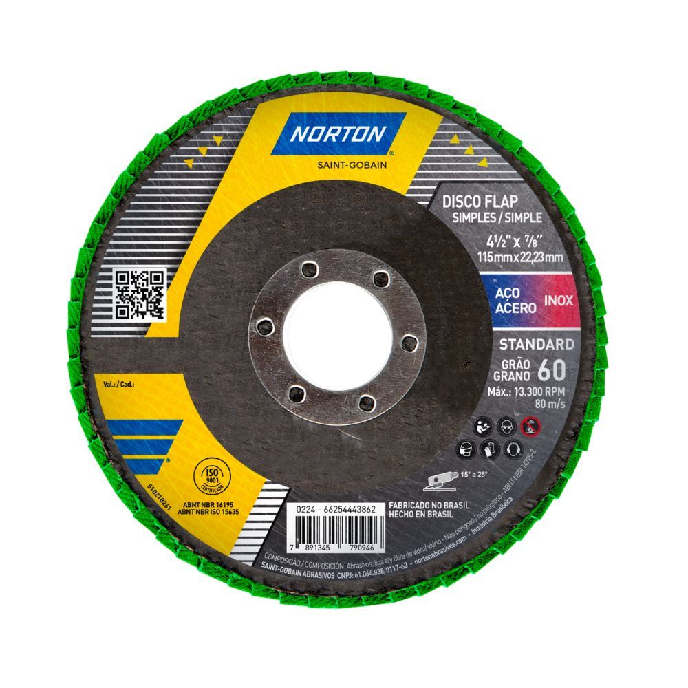 Disco de Lixa Grão 60 115mm Desbaste Flap R244 NORTON / REF. 000000066254443862