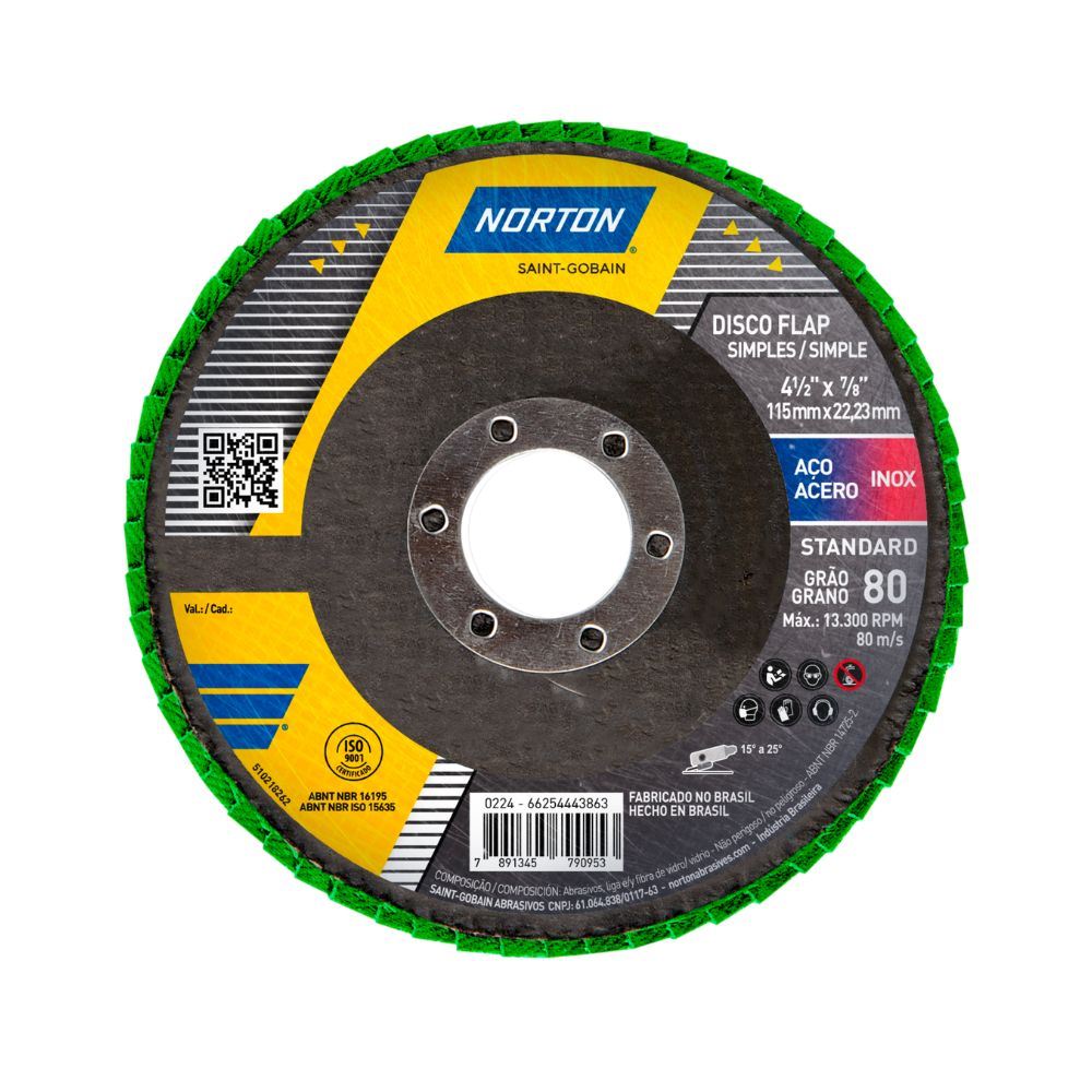 Disco de Lixa Grão 80 115mm Desbaste Flap R244 NORTON / REF. 66254443863