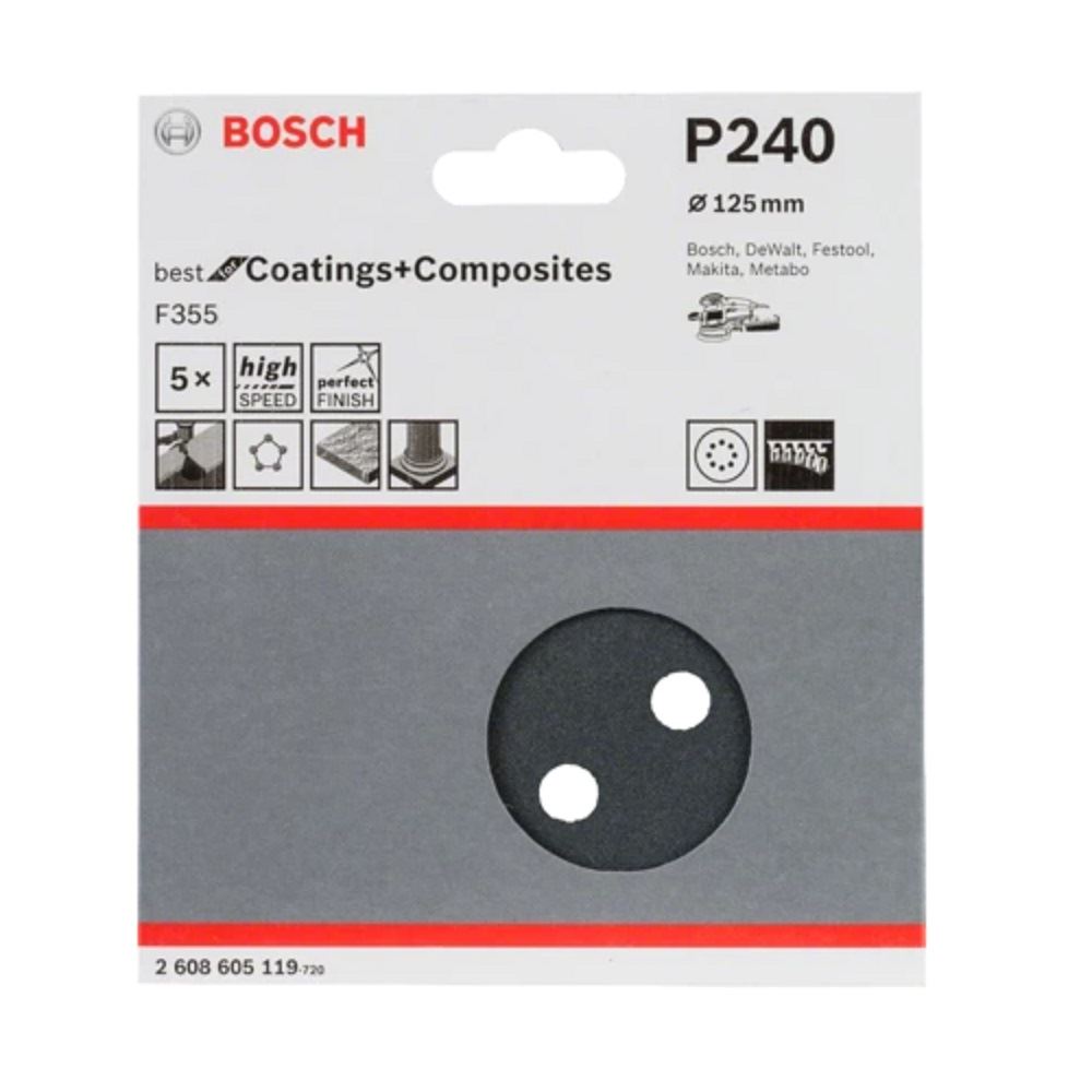 Disco de Lixa para Lixadeiras Excêntricas com 8 Furos F355 GR240 125mm Best for Coatings and Composites BOSCH / REF. 2608605119-000