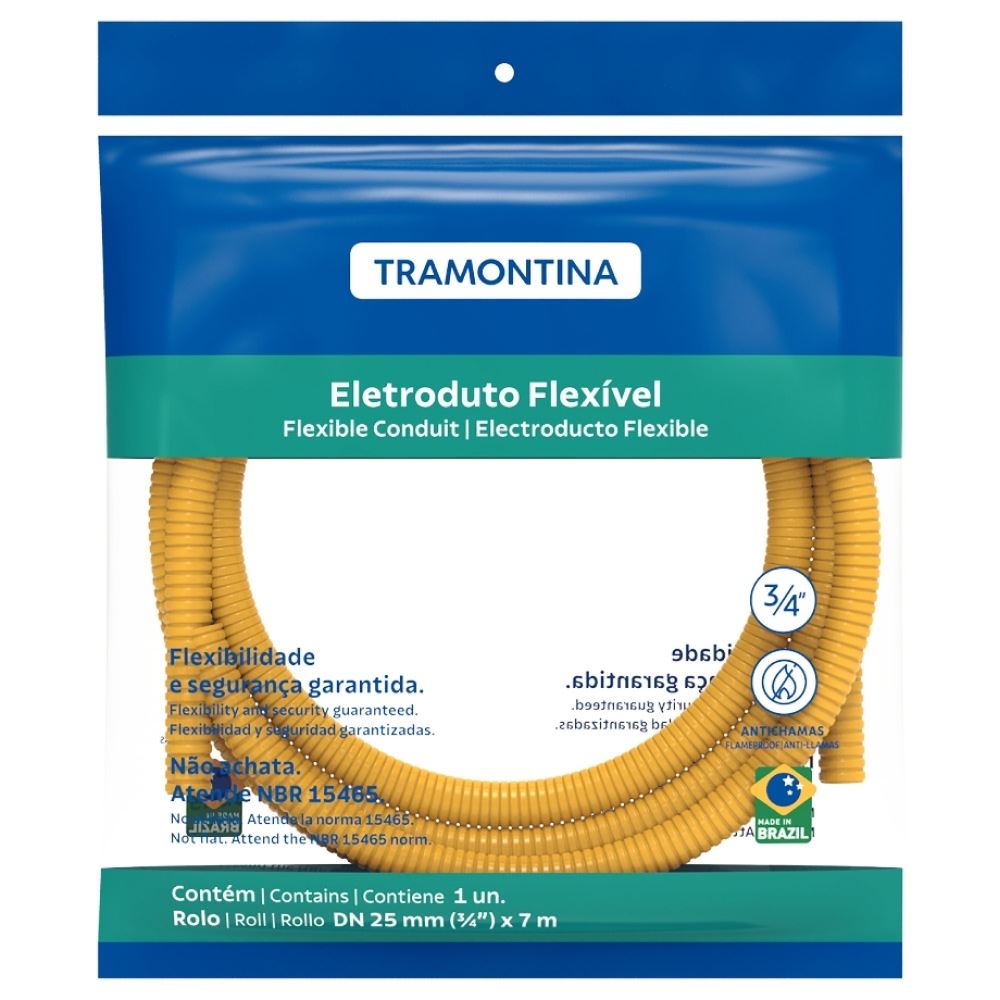 Eletroduto Corrugado PVC 25mm 7 Metros Amarelo TRAMONTINA / REF. 57505082