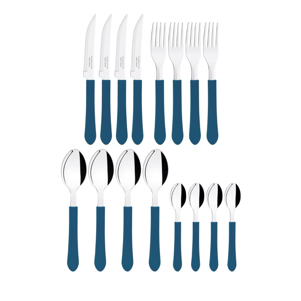 Faqueiro Leme 16 Peças em Aço Inox e Cabos de Polipropileno Azul Oceano TRAMONTINA / REF. 23198/917