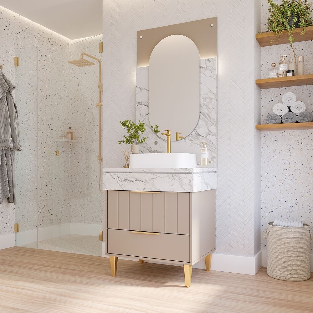 Gabinete para Banheiro MDF com Pés 70cm Riviera com Cuba Cappuccino Calacata MGM / REF. 32456.67