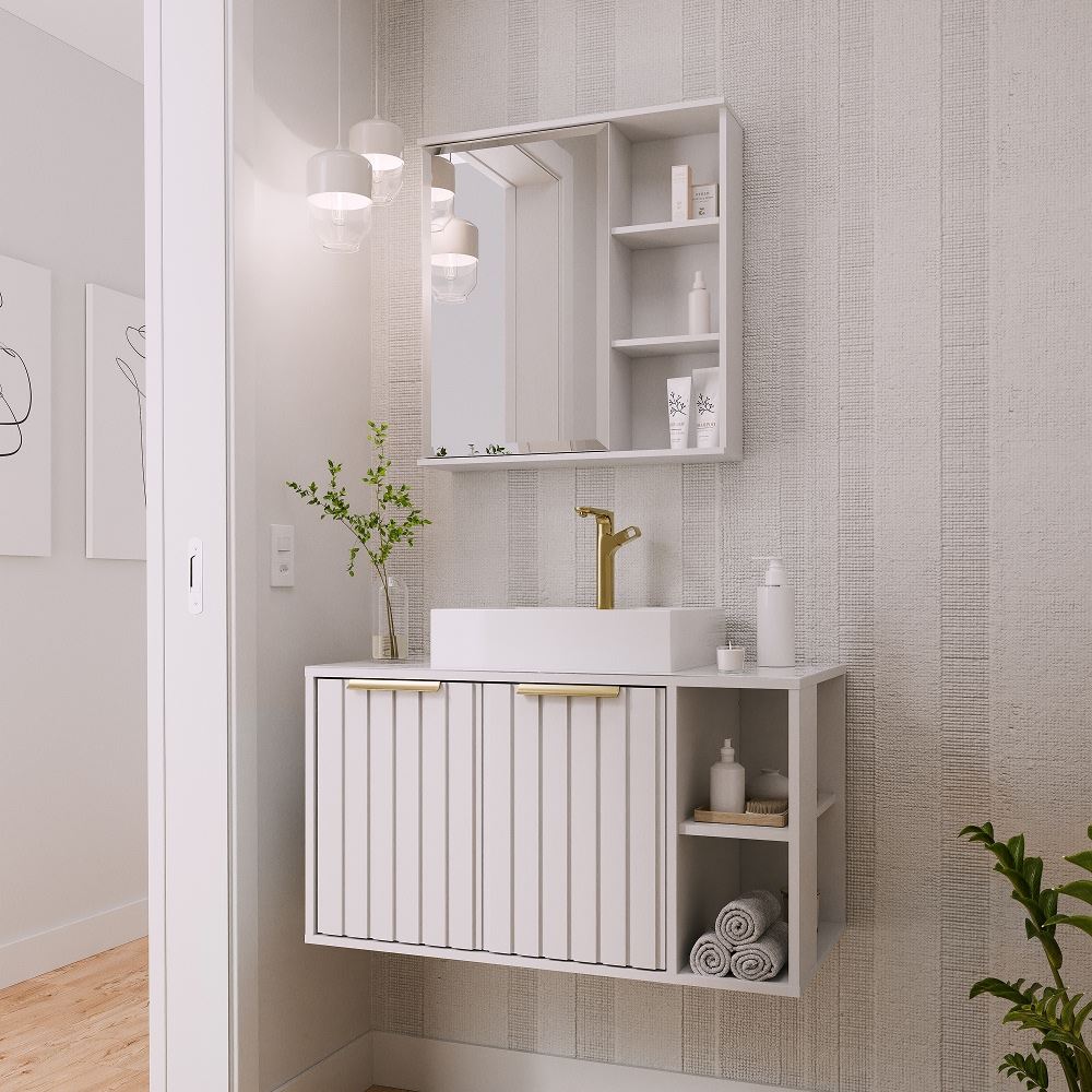Gabinete para Banheiro MDF Suspenso 80cm Noruega com Cuba Branco MGM / REF. 31608.2