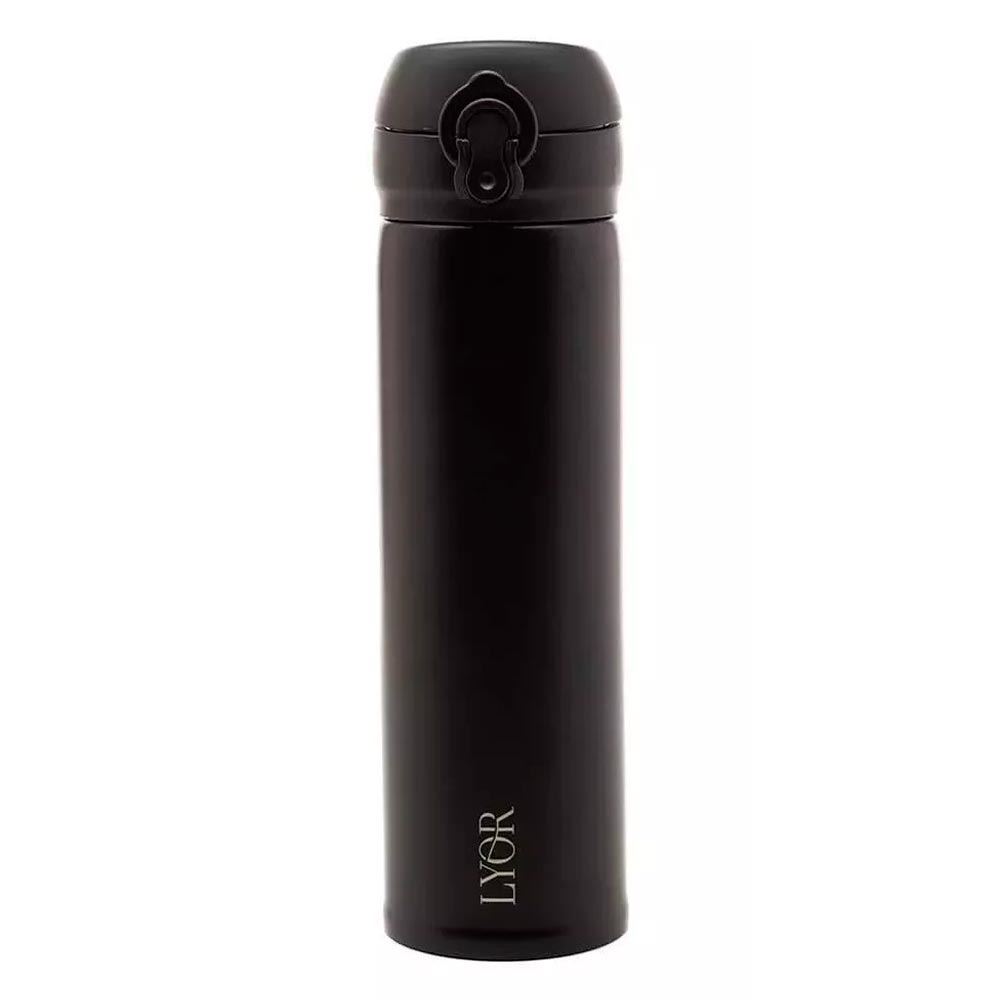 Garrafa Térmica 410ml Com Duplas Parede em Aço Inox com Tampa Flip Preta LYOR / REF. 4683