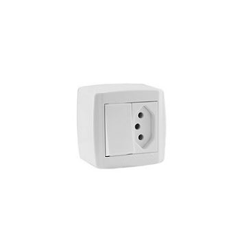 Interruptor Sobrepor 1 Tecla Simples + Tomada 20A Slim Branco - Ref. 84201 - ILUMI