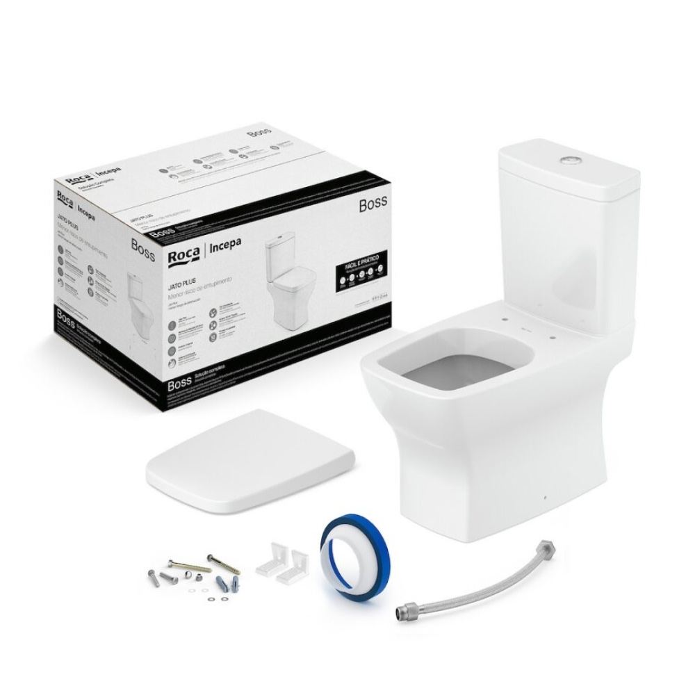 Kit Bacia Sanitária com Caixa Acoplada 3 e 6L com Assento Termofixo e Itens de Instalação Boss Branca ROCA / REF. 1897230011100