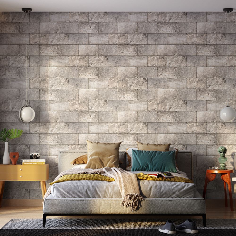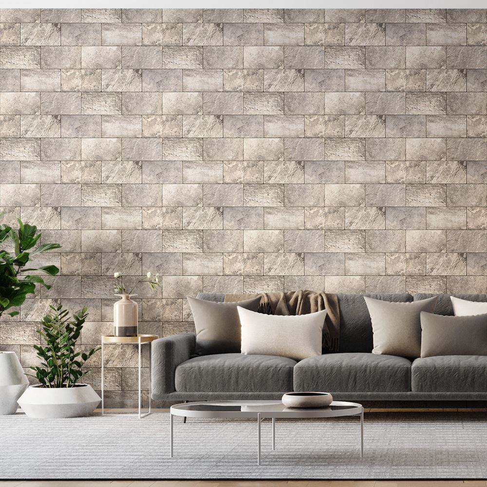 Papel de Parede Vinílico Tijolos de Pedra Bege 9,5m BOBINEX / REF. PP224