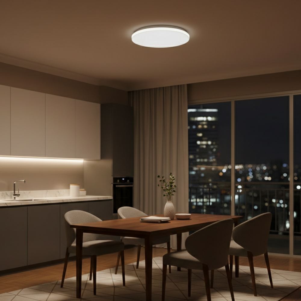 Plafon de Ferro Led 20W Bivolt com 3 Temperaturas Genova Redondo Sobrepor Branco HEVVY / REF. AH-1086/30Y BC