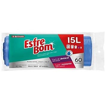 Saco de Lixo Plástico 15 Litros Rolo com 60 Sacos Esfrebom - Ref.BT305 - BETTANIN