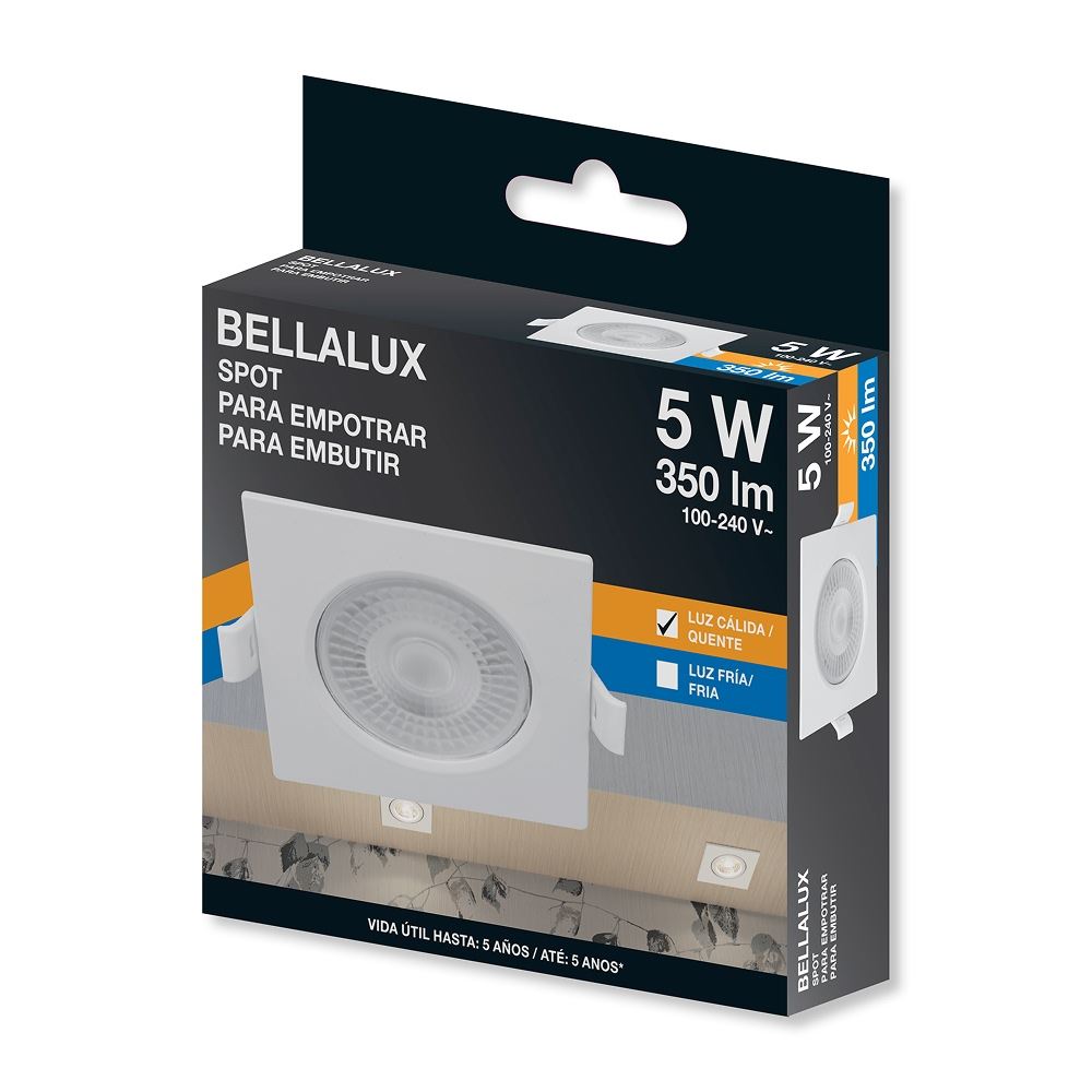 Spot em Abs Led 5w Bivolt Embutir Quadrado 3000K Branco BELLALUX / REF. 7024284