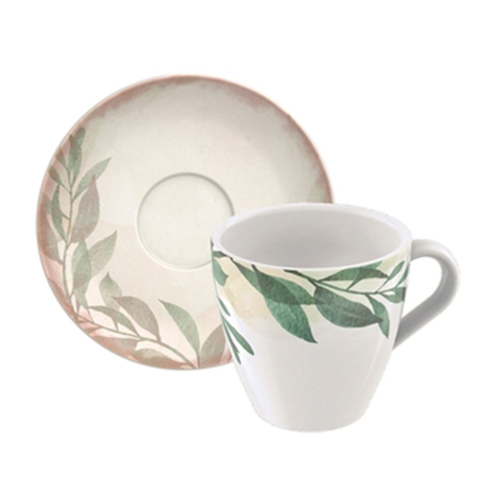 Xícara de Chá com Pires de Porcelana 200ml Natur Decorado TRAMONTINA / REF. 96580/027